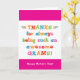 Llamas a tu abuela Grams, no a tu abuela. ¡Imaginen lo emocionados que estarán los Grams para recibir una tarjeta del Día de la Madre dirigida especialmente a ella! A tus gramos también les encantará el divertido y colorido diseño basado en textos de esta tarjeta del Día de la Madre que dice "¡Gracias por ser siempre tan impresionantes Grams! ¡Feliz Día de la Madre!" ¡Haz personalizable esta carta! Haga clic en "Editar diseño", "Inferior/Derecha: Texto e imágenes", "Texto" y "Añadir texto" para escribir su propio personalizado, mensaje personalizado a los Grams de dentro!