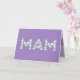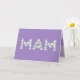 Tarjeta del Día de la Madre para Mamá. Llamas a tu madre Mamá, no Mam. (Mam significa madre en punjabi, holandés, galés e hindi). Imagina lo emocionada que estará Mamá al recibir una tarjeta del Día de la Madre dirigida especialmente a ella. A tu mamá también le encantará el hermoso diseño floral de esta tarjeta que dice "Mam" escrito en pequeñas flores blancas en la parte delantera, con un fondo morado, y "¡Feliz Día de la Madre!" escrito en pequeñas flores blancas en el interior.