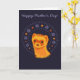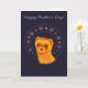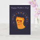 Tarjeta del Día de la Madre con una ilustración digital en amarillo, naranja y morado que representa a uno de estos adorables animales esponjosos sonriendo, elementos decorativos, flores y estrellas alrededor. Gran regalo para una mamá hurón.