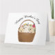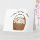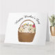 Una tarjeta del Día de la Madre con una ilustración de tres adorables cachorros de Golden Retriever sentados en una cesta de flores rodeados de hermosas flores. El diseño crea una atmósfera cálida y amorosa, que evoca sentimientos de ternura y afecto. Los cachorros puros e inocentes mejoran el ambiente familiar, lo que hace que esta tarjeta sea una excelente opción para el Día de la Madre. Se recomienda especialmente para aquellos que aman a los perros, añadiendo un toque extra de alegría y encanto.
