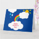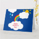 Un patrón temático del clima de colores brillantes y maravillosos que incluye un arcoíris, nubes blancas esponjosas, una llovizna y sol.