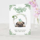 C3llsD Fur Baby presenta tarjeta de felicitación del día de la madre con un lindo Pug asomándose desde un marco floral circular y un fondo de hojas. La tarjeta es personalizable para que puedas personalizar todos los textos de la tarjeta. Perfecta como regalo del día de la madre para tu madre, suegra o abuela que es amante de los perros, especialmente de los Pug