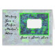Diseño floral en verde y azul para una tarjeta del Día de la Madre tardía que puedes añadir tu propia foto. Sería lindo agregar una imagen de tu familia con tus manos sobre tus bocas, o con gorras de las dunas, solamente para mostrar que te engañaste.