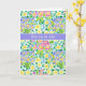 Una tarjeta bonita del día de madre con el 'día de madre feliz en portugués y un modelo de color rosa oscuro, primaveras profundamente azules y amarillas, de un diseño pintado a mano de Judy Adamson.