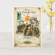 Celebre el Día de San Patricio con el encanto irlandés de antaño utilizando esta tarjeta de felicitación vintage ricamente detallada. Con una escena clásica de un pub irlandés, una bandera irlandesa ondeando y una pareja vestida tradicionalmente con atuendo de época, esta ilustración evoca la calidez, la romance y la herencia de Irlanda. El mensaje sincero "¡Salud!" - que significa "brindis" en irlandés - añade un toque festivo y auténtico.