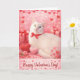 Esta es una foto de mi gato blanco con un ojo azul y otro verde. Se llama Snow y es una belleza. Esta es una tarjeta de felicitación del Día de San Valentín rosa con corazones, regalos y rosas.
