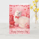 Esta es una foto de mi gato blanco con un ojo azul y otro verde. Se llama Snow y es una belleza. Esta es una tarjeta de felicitación de San Valentín rosa con corazones, regalos y rosas.
