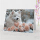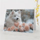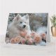 Envía cálidos deseos para el Día de San Valentín con esta tarjeta de suaves tonos pastel que presenta a un adorable perro esquimal americano sosteniendo un ramo en forma de corazón, rodeado de delicadas rosas y peonías rosadas. Con copos de nieve que caen suavemente y un entorno invernal soñador y romántico en tonos rosados y blancos, esta tarjeta captura el encanto acogedor de un romance invernal, perfecta para los amantes de los perros y cualquiera que celebre el amor.