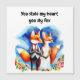 La tarjeta de saludo del Día de San Valentín de zorro presenta a una pareja de zorros casados enamorados con la frase Me robaste el corazón, zorro astuto