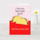Tarjeta perfecta del Día de San Valentín para amantes de tacos. Esta tarjeta es personalizable con tu mensaje.