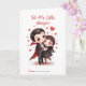 Una adorable pareja de vampiros chibi para el Día de San Valentín: el pequeño vampiro con capa abrazando a su novia con lazo rojo y calcetines a rayas.