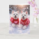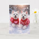 Celebra el Día de San Valentín con el doble de encanto en esta tarjeta de West Highland White Terrier para el Día de San Valentín que calienta el corazón. Con dos Westies alegres corriendo a través de la nieve recién caída, vestidos con suéteres rojos acogedores cubiertos de corazones rosados, este diseño captura todo lo que los amantes de los perros adoran: diversión, lealtad y afecto puro.