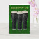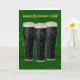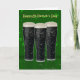 Tarjeta del día de St Patrick con tres pintas de cerveza de malta irlandesa seca