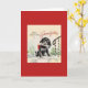 Tarjeta de bienvenida Retro / Vintage para el Día del Padre. ¡Un cachorro adorable con un periódico en la boca! ¡Feliz Día del Padre al Abuelo!