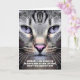Una divertida tarjeta del Día del Padre con una imagen de un gato mirándote intensamente, Papá, con el texto, “Humano, estoy honrado de tenerte como mi gato papá. ¡No me decepciones!”. Dentro de la tarjeta tiene el texto “Feliz Día del Padre” que es personalizable.