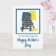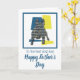 Silueta de French Bulldog en patrón de líneas de rejilla modernas en amarillo, azul y negro. 'Al mejor papá perro' y 'Feliz Día del Padre' en el exterior y un mensaje adorable dentro que se puede cambiar a lo que quieras. Una excelente manera de celebrar el Día del Padre para un amante de las mascotas.