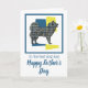Silueta de perro Samoyedo en patrón de líneas de rejilla modernas en amarillo, azul y negro. 'Al mejor papá perro' y 'Feliz Día del Padre' en el exterior y un mensaje adorable en el interior que se puede cambiar a lo que quieras. Una excelente manera de celebrar el Día del Padre para los amantes de las mascotas.