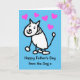 Dibujo animado lindo de un perro sonriente para el Día del Padre. El mensaje dice 'Feliz Día del Padre de parte del perro x'. La tarjeta tiene un fondo azul con corazones rosas, pero es fácil editarlo a un color diferente o un blanco minimalista agradable. Dentro de la tarjeta dice '¡Vamos a dar un paseo!'. Personalice fácilmente esta tarjeta editando el texto de la plantilla en la parte frontal y posterior. ¡Gracias por ver mis diseños!