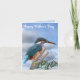 Esta tarjeta editable del Día del Padre muestra mi pintura de un hermoso Kingfisher contra un fondo de nubes esponjosas y Willow.