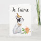 Derrita el corazón de su amado este el día de San Valentín con esta tarjeta de felicitación temática adorable de "Frenchie" (bulldog francés). Esta tarjeta ofrece un bulldog francés dulce, un ramo de flores, y el mensaje "t'aime de Je."