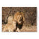 León que ronda con un cachorro de león en su tarjeta lateral.