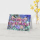Lirios con efectos frescos del color y del esquema, y "feliz cumpleaños!" texto con la transparencia fresca y la mezcla. Verso de la escritura, 84:11 del salmo, en interior.