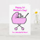 Dibujo animado lindo de una niña que ondea desde un cochecito rosa. Bebé feliz sonriente que lleva un gorro rosa. La tarjeta dice 'Feliz primer día de la madre a la maravillosa mamá'. Personalice fácilmente esta tarjeta editando el texto de la plantilla en la parte frontal y en el interior. ¡Gracias por ver mis diseños!