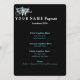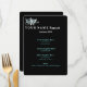 Creada con una tarjeta de 110 lb. semi-gloss para una impresión fotográfica óptima, esta tarjeta de programa de almuerzo de estilo clásico le espera para personalizar con su propia información. Tiene esquinas redondeadas para un aspecto elegante y todo negro para una aventura elegante. El texto está hecho en blanco y acuático y cuenta con una huella de corona brillante Verde azulado-plateada en la esquina superior izquierda. Un toque agradable para tu brunch de premios también. Debe personalizar este elemento. Elija estilos de texto y colores, etc.