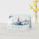 Tarjeta de felicitación para navidades | Foto Adentro - Déjalo nevar - Hermosa escena de montaña acuarela - pinos nevados de siempre verde, con dos mágicos ciervos blancos en primer plano -dentro de un lugar para su foto y adornados con un spray botánico de invierno - un spray floral botánico de invierno en la parte posterior . Todo sobre un fondo verde de menta muy claro. Esto es parte de la colección de ciervos Watercolor Woodland de WhimsicalArtwork™