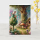 Le deseamos una tarjeta de día mágica para un amigo o un familiar. Un ilustracion de bonito con un cuento de hadas en un alcachofa con un fondo mágico de cuento de hadas, flores y un viejo árbol y cabaña vintage.