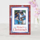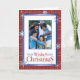 Envía felicitaciones de Navidad con esta elegante tarjeta de foto doblada. Cuenta con copos de nieve que caen, bordes festivos rojos y azules. Personaliza añadiendo tu foto, nombres, año y mensaje.