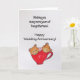 Una linda tarjeta de aniversario de boda con un toque de humor y romance.