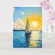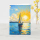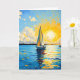 Desea a alguien un cumpleaños sereno y pacífico con esta tarjeta de cumpleaños temática de velero. Esta tarjeta tiene una encantadora ilustración de un velero navegando pacíficamente frente a una bonita puesta de sol. El arte está hecho con IA en un estilo de pintura al óleo impasto.