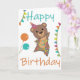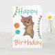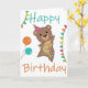 Cumpleaños saludando Feliz Cumpleaños con globos y con el honor de cumpleaños para los niños. Una tarjeta divertida y colorida para el cumpleaños de un niño. Para los amigos que aman a los osos.