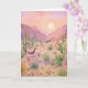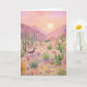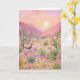 This greeting card features a painted landscape of the desert at sunrise.