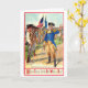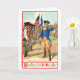 Arte del vintage de George Washington que toma el comando del ejército. ¡Tres alegrías para el rojo, el blanco y el azul! El interior de la tarjeta lee: Día de la Independencia feliz