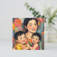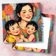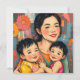 Tarjeta de acuarela del Día de la Madre sentimental abstracta colorida. Bonita ilustración abstracta de una mamá asiática, hijo e hija.