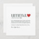 El diseño simple de mamá coreana (umma) está en el formato de una definición con la cita "Mamá Umma - mamá, experta en doenjang jjigae, mi primer y favorito profesor, el que elimina mi tristeza, mi constante fuente de confort, mi mayor apoyo. Gracias por estar siempre ahí por mí, mamá. 우 리 엄 마 고". Este diseño reflexivo y conmovedor hace un buen regalo para tu madre coreana en el Día de la Madre, el cumpleaños de umma, o en cualquier momento del año que quieras mostrarle cuánto significa para ti.