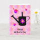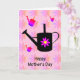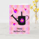 Tarjeta para un jardinero entusiasta con la imagen de una lata de agua con una flor rosa y un fondo colorido de flores y latas de agua. Personalice fácilmente esta tarjeta editando el texto de la plantilla en el frente y en el interior. Gran carta para el Día de la Madre. ¡Gracias por ver mis diseños!