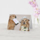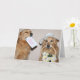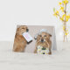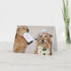 Este recuperador de oro le está dando una tarjeta del Día de la Madre y flores a una madre de oro que se merece.
