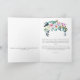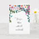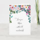 Encabezado floral con flores coloridas, con muchos tonos rosa y verde a un azul violáceo claro. Cita en el interior izquierdo y en el interior derecho mensaje de bienvenida con un ramo de flores similar en la parte superior.