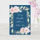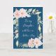 Tarjeta del Día de la Madre para hija en azul marino con flores de acuarela rosadas y verso sentimental.
