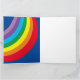 Un patrón temático de clima maravilloso que incluye una nube blanca esponjosa con un goteo de gotas de lluvia y un sol brillante que brilla a través de la nube. Hay un arcoíris dentro de la tarjeta.