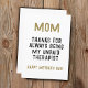 Tarjeta Día de la Madre Terapeuta No Pagada Humor Divertid
