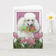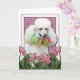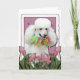 Tarjeta Día de la Madre - tulipanes rosados - caniche -