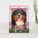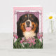 Tarjeta Día de la Madre - tulipanes rosados - perro de