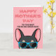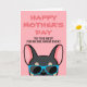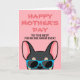Franceses, ¿qué mejor manera de mostrarle a tu Mamá cuánto la amas este Día de la Madre con una tarjeta personalizada solo de ti! El diseño presenta una ilustración de estilo cartoon de un bulldog francés de color negro y marrón que lleva gafas de sol azules con la leyenda "¡Feliz Día de la Madre a la mejor Mamá Frenchie de todas!" escrita en la parte frontal. El interior de la tarjeta dice "Para Mamá, te amo más que golosinas" pero se puede cambiar a la redacción de tu elección. También están disponibles versiones de bulldog francés de diferentes colores.