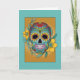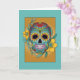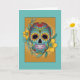 Tarjeta Día de Muertos Verde Azul y Calavera de Marigold y