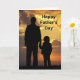 Una salida del sol hermosa con un padre y su niño en silueta. El día de padre feliz de las palabras sobre ellos.