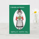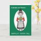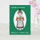 Una tarjeta de saludo del Día de San David para personalizar, con una niña que usa el traje nacional y sostiene un montón de tonterías. De un ilustracion pintado a mano por Judy Adamson.